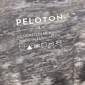Features: Sporty retro roller rink inspired leggings. Glittery ombre design with Peloton logo down the side near the hem, full length leggings, stretch double knit, sueded face