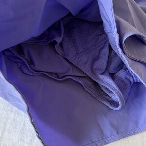 Very cute purple running short with built in brief. Only worn a few times. Washed on delicate and hung to dry. I just don’t run very much anymore and so they just sit in my drawer. Runs tts. Smoke free home.