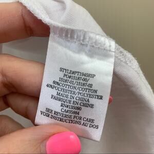 Size L. 60% Cotton 40% Polyester. Length 26 inches. Armpit to armpit 21 1/2 inches. Semi-sheer. Great condition! Style# pt194583p