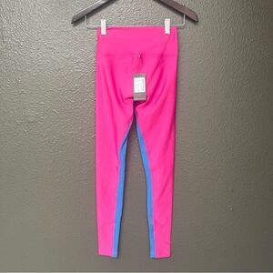 Full length pink legging with blue ribbed insert
