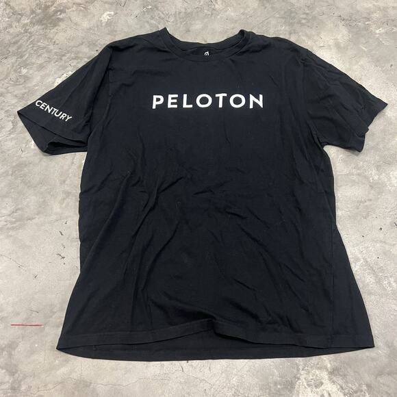 Peloton T-Shirt Men's Size XL 100 Century Black Short Sleeve Polyester Blend. Condition is Pre-owned - Good. Shipped with USPS Ground Advantage.