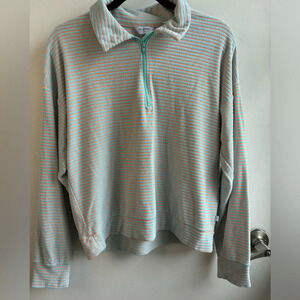Peloton Turquoise and Orange Striped Terry Cloth 1/2 Zip. Size medium