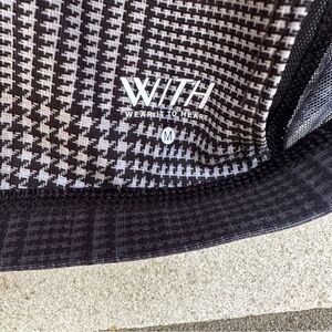 Designed with a flattering + cooling strappy back and blocked houndstooth pattern in rich fall hues. It's the ultimate old-school style statement. Scoop neck. Medium support. Unique strappy/open back Blocked argyle pattern. Four-way stretch/moisture-wicking/quick-drying fabric. 90% polyester/10% spandex. Compressive fit. Size M. Excellent used condition - does not come with original pads.