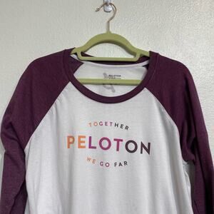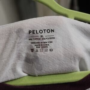 Extra large white, burgundy and black tee by Peloton in excellent preowned condition.