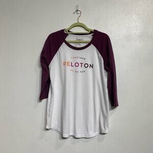 Extra large white, burgundy and black tee by Peloton in excellent preowned condition.