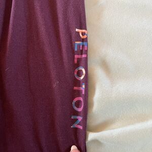 Elevate your activewear game with these Peloton Women's Drawstring Jogger Sweat Pants in size Large. Perfect for travel, workouts, parties, or casual wear, these pants feature an elastic waistband and tapered leg style for a comfortable fit. The burgundy color adds a touch of designer flair to your wardrobe.
