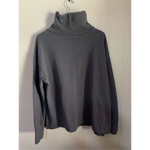 Peloton funnel neck sweatshirt, women's sized 1X.It is dark gray in color. It has a relaxed fit, roomy without being unflatteringly large. Has thumb holes!!!