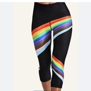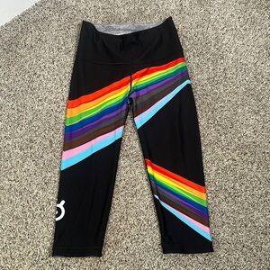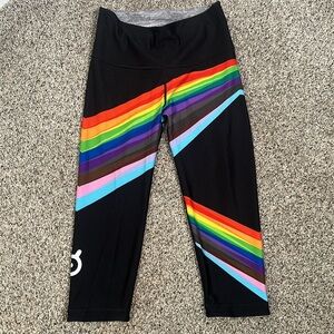 Peloton pride rain bow black reversible leggings size small great condition the waist is 13 inches the inseam is 19 inches