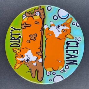 This cute handmade magnet features 2, hand illustrated welsh corgi dogs. Perfect for keeping track of dishes in the dishwasher. Simply rotate the magnet to display a clean or dirty dog.