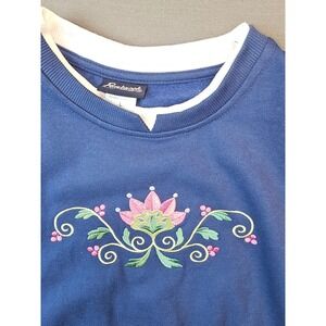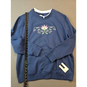 Pembrook Blue Floral Embroidered Sweatshirt Jogger Pants Set Women's Size L NWT