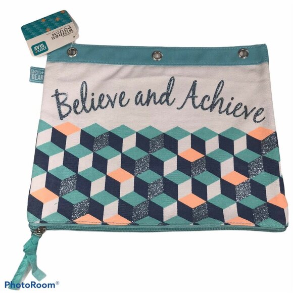 Pen and Gear Canvas Binder Pouch “Believe and Achieve” Blue 11” X 9” NWT. Condition is New. Believe and Achieve on one side and blue solid on the other side. Three metal reinforced rings to put it in a notebook binder with a zipper so pencils, pens, markers, erasers or anything does not fall out. Smoke free home. Please let me know if you have any questions. Thank you. 27