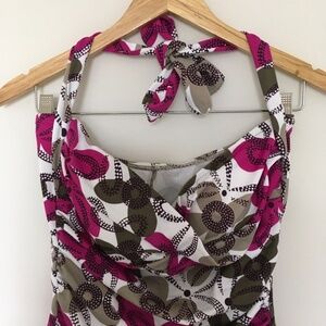 Penbrooke Fuschia Pinwheels Bandeau-Halter One Piece Swimsuit 14 Tummy Control
