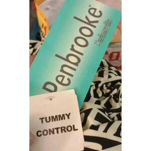 Penbrooke One Piece Swimsuit Tummy Control Black & Cream Size 18W NWT