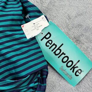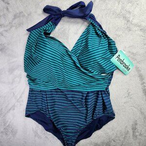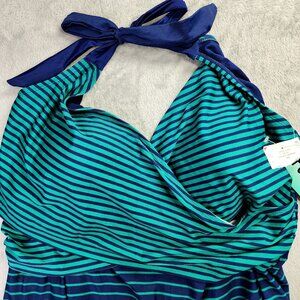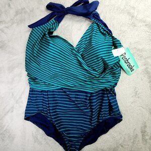 Penbrooke One Piece Swimsuit Womens Plus 3X Blue Stripe Halter Crossover Stretch