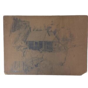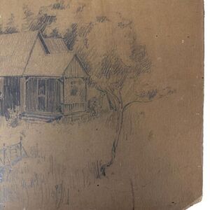 Pencil Drawing Cottage In The Woods Artist Unknown Unsigned Original Vintage