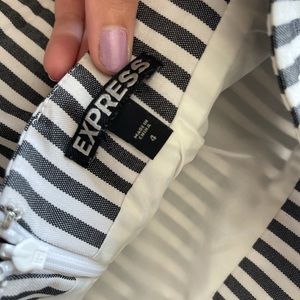 Very flattering with some stretch, my absolute favorite pencil skirt when I worked in the business world. White and navy striped.