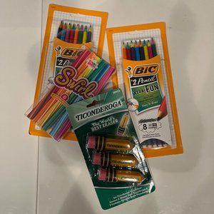 2 packs of Bic #2 "xtra-fun" pencils as pictures. They have ultra-solod, break-resistant lead and are easy erase. (Each pack contains 8 pencils for a total of 16 penciles)