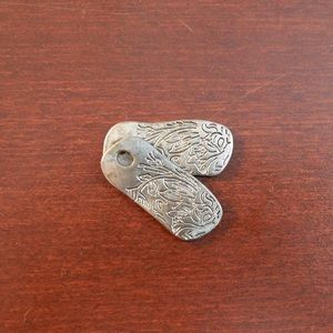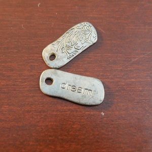 Two metal pendants with engraved words "Journey" and "Dream". Engraved pattern on back