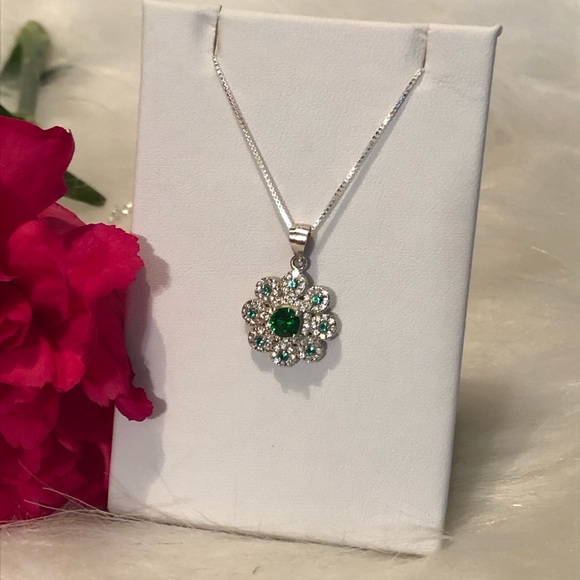 Gorgeous lab created Emerald Quart and white Topaz Set In Solid Sterling Silver. Very sparkly!