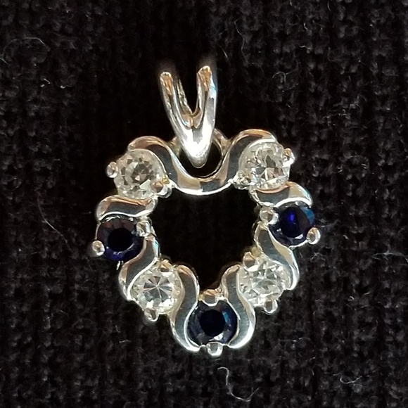Cubic zirconia, cultured sapphire, sterling silver. No chain. First photo shot in natural light, no flash.