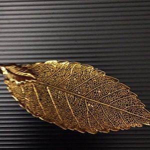 Fabulous gold leaf with ver defined design. Measures 2” in length. Extremely lightweight and brilliant. Never worn. Perfect!