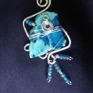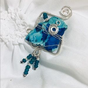 Pendant made with blue imperial jasper. Wire wrapped in silver! Breathtaking!