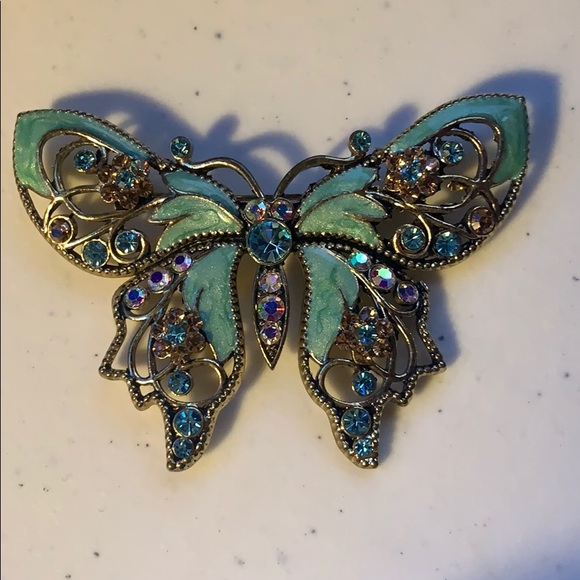 Turquoise Butterfly pendant with cubic zirconium stones