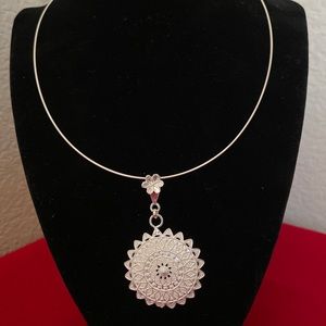 Beautiful circular sun pendant engraved with designs. Made of real silver. Marked 925.