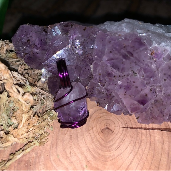 Amethyst wire wrapped pendant with purple wire