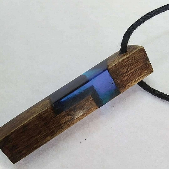 Wood and Resin. Made by @gmbrucew, with adjustable slipknot black cord. unisex