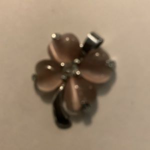Beautiful soft pink glass four leaf clover pendant with clear stone in the middle.