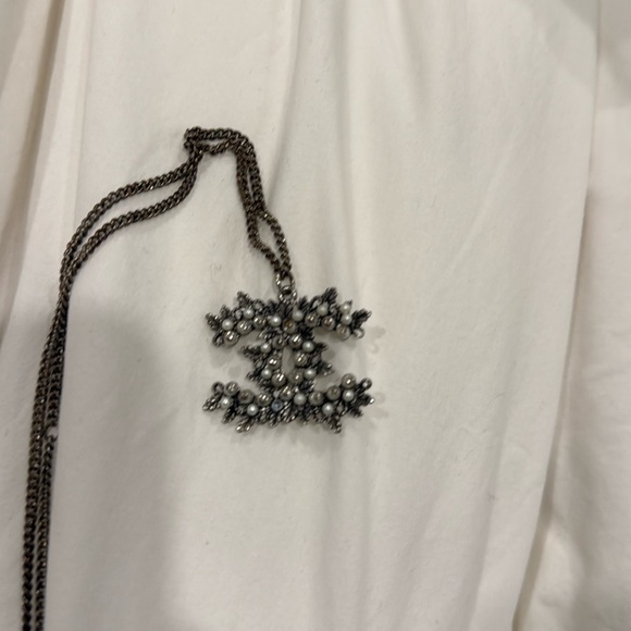 Beautiful pendant on long chain. It got slightly darker due to metal properties but can be easily cleaned. Adjustable chain.
