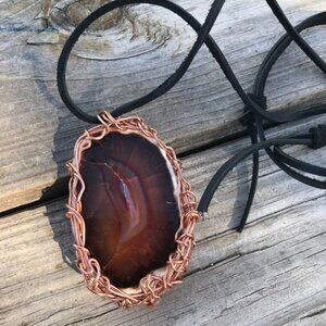 Pendant Agate Sard Copper Tribal Leather Carnelian Unisex Rustic Burning Man