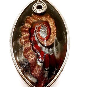 Pendant Handmade Black Abstract Swirl Design Metallic Glass Wire Wrap Accents