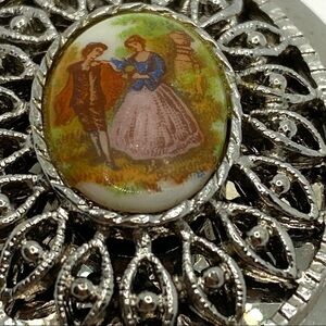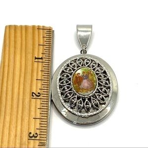 A beautiful large pendant locket features a small picture insert in the center. The chain was added and fits well with this locket.
