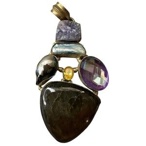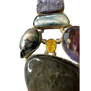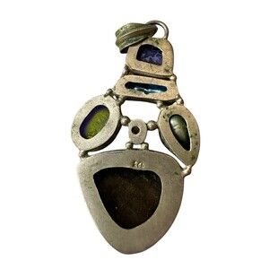 Pendant Multi Gemstone Set in 925 Sterling Silver VTG Healing Mystical Goddess