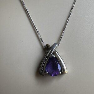Pendant Necklace 18" Pear Shape Purple Amethyst 925 Sterling 14K Gold Plate 3.5g