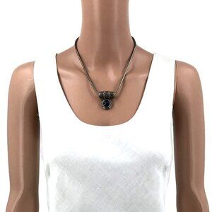 Pendant Necklace Antique Silver Tone Black Center 18 Inch Length