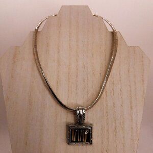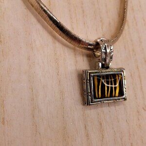 Pendant Necklace Simulated Tiger 1" Pendant 17" Omega Silver Tone Chain