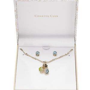 Multi-Stone Wrapped Pendant Necklace & Stud Earrings Set