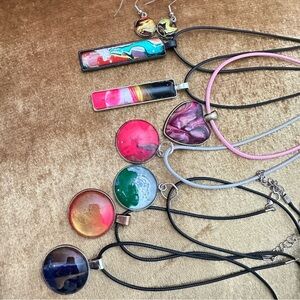 Pendant Necklaces Jewelry 8 Piece Lot OOAK HANDMADE Hand Painted signed 5517