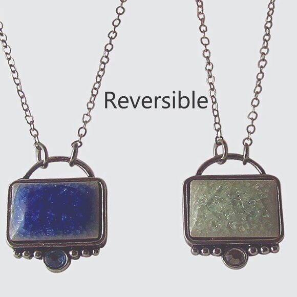 REVERSIBLE PORCELAIN Pendant 18" + extender Blue/ Cream NEW! Beautiful!