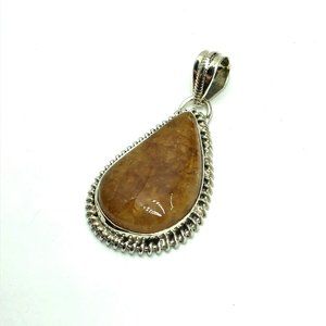 Sterling Silver Pendant w/ Golden Amber Quartz Stone