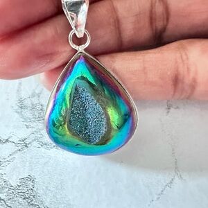 Pendant iridescent rainbow hematite Gemstones Stones Silver Tone 3331