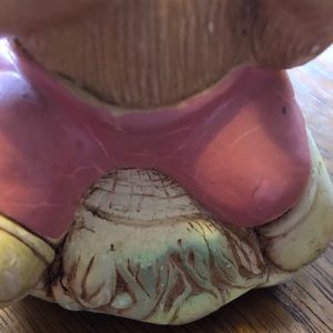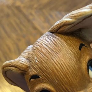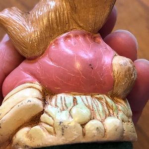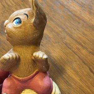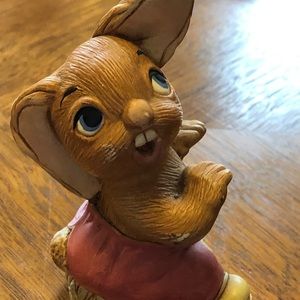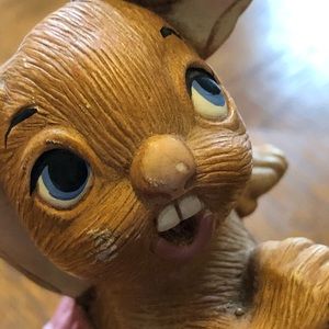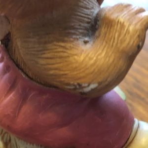 Pendelfin Rabbit “The Thumper” in pink pants hand painted stonecraft by Pendelfin Studios in England. This adorable rabbit is is good vintage condition with wear consistent with age, scuffs, discoloration and chips. Please see all photos for any condition issues. “The Thumper” even with rabbit’s condition issues is still a very cute display piece. All reasonable offers will be considered.