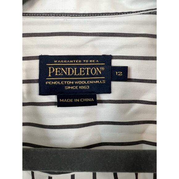 Pendelton Men's White and Black Striped Button Down Top Size 12