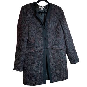 Pendelton women’s Size 10 dark charcoal Red&Gray woven tweed three button lightly padded loop front closure pockets fully lined coat Pea Coat long jacket long sleeve.