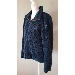Pendelton Women's Fuzzy Sherpa Jacket Sz Small Full Zipper Blue Plaid Pockets