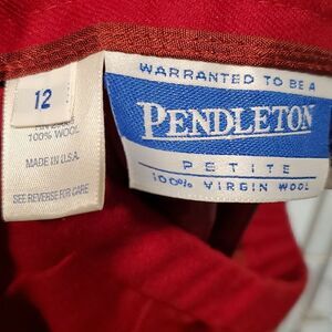 In excellent used condition minor spots on the front as shown very small. 100% new wool in red with a full lining. Zipper and button closure in the back with a back slit. Vintage size waist measures 15 inches and it is 25.5 inches long.