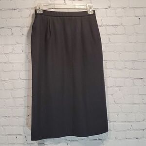In excellent used condition no flaws. Black 100% virgin wool with a full lining. Zipper and hook closure in the back with a small slit. Waist measures 12 inches and it is 26.5 inches long. Has 2 front pockets as well.